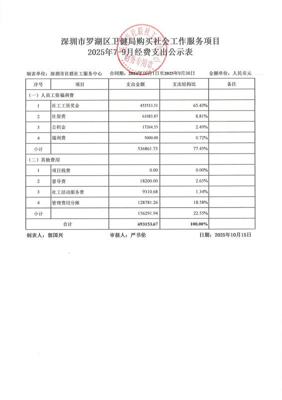 分类: 罗湖作者:社联社工2025年10月15日文章导航上一页上一文章:玉塘精防2025年7-9月财务公示下一页下一文章:市医务社工项目2025年7-9月财务公示相关文章深圳市罗湖区卫健局购买社会工作服务项目2025年4-6月经费支出公示表2025年7月15日深圳市罗湖区卫健局购买社会工作服务项目2025年1-3月经费支出公示表2025年4月15日深圳市罗湖区卫健局购买社会工作服务项目2024年10-12月经费支出公示表2025年1月15日罗湖教育2021年1-3月财务公示表2021年4月2日田心社区2020年审计说明2020年11月30日罗湖教育2020年4-6月财务公示表2020年7月2日