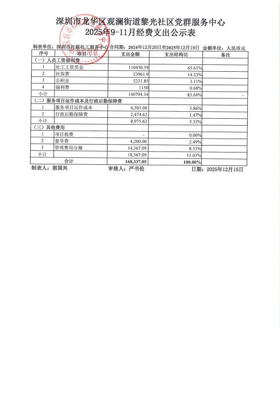 黎光社区2025年9-11月财务公示