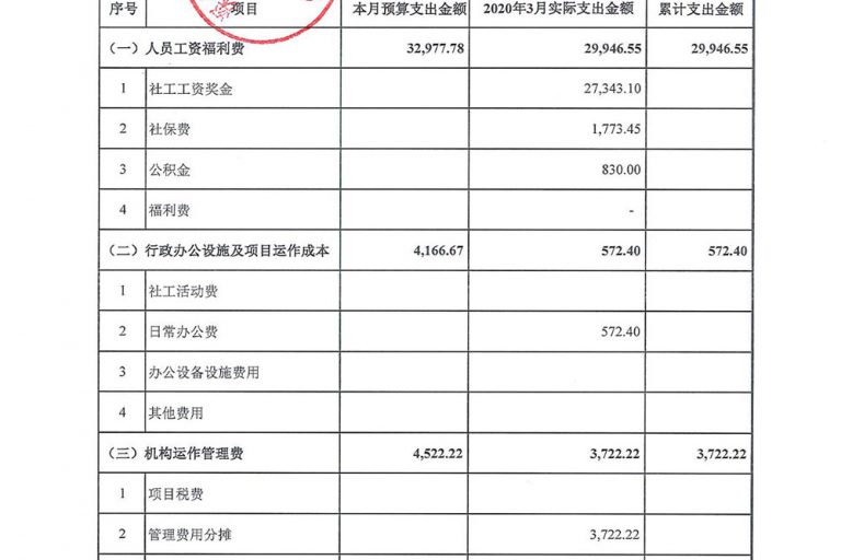 阳光妈妈项目2020年3月经费支出公示表