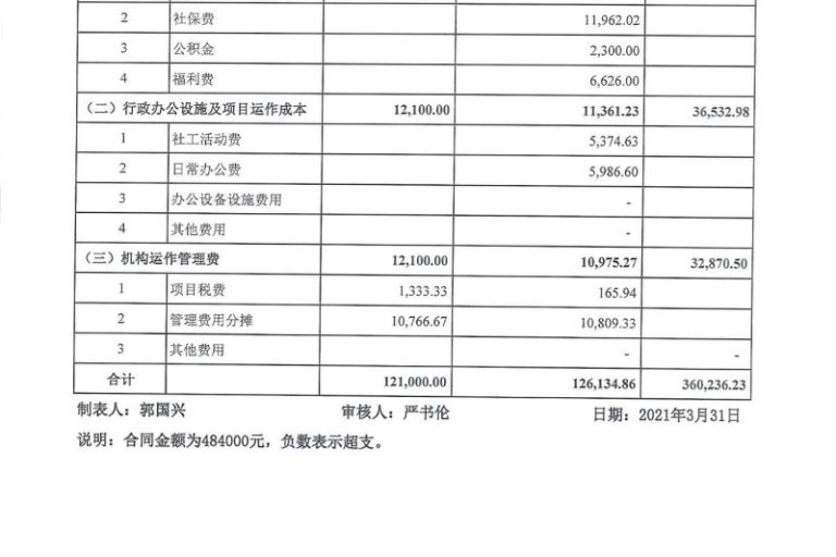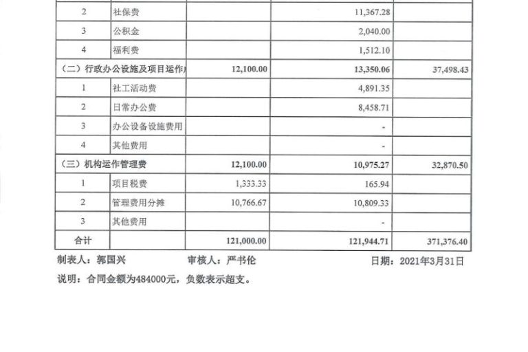 东乐社区2021.1-3月财务公示表