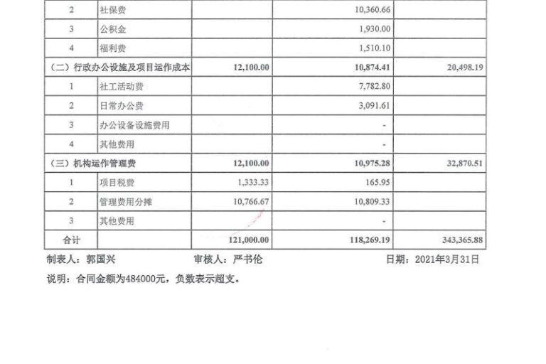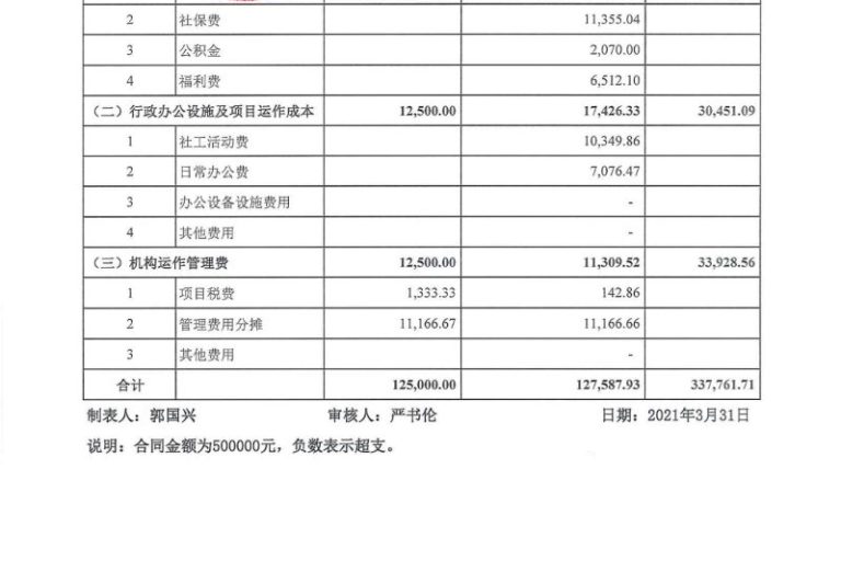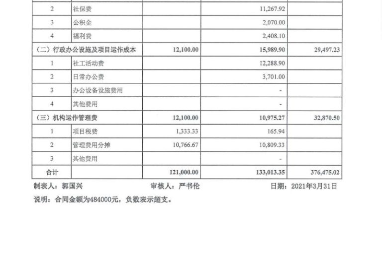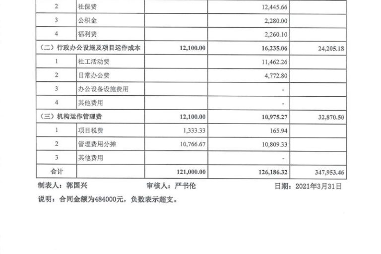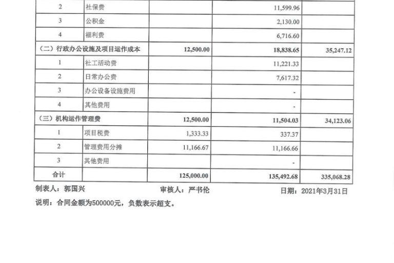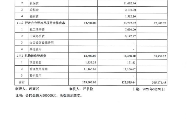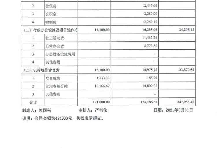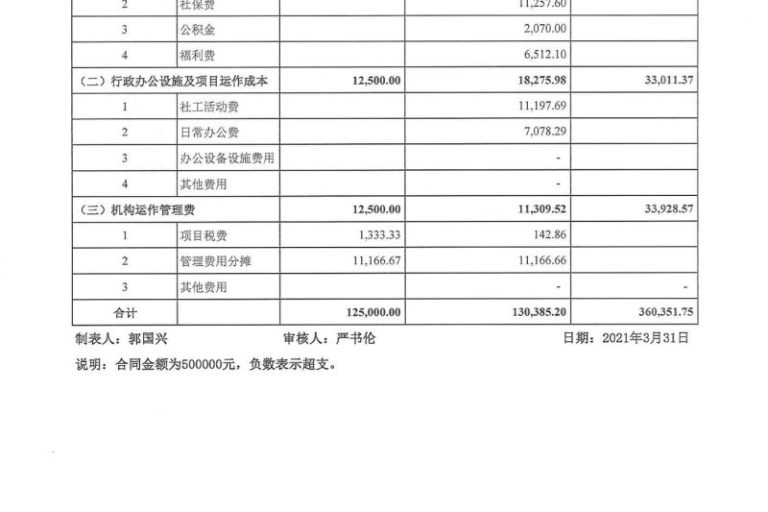 龙湖2021年1-3月经费公示表