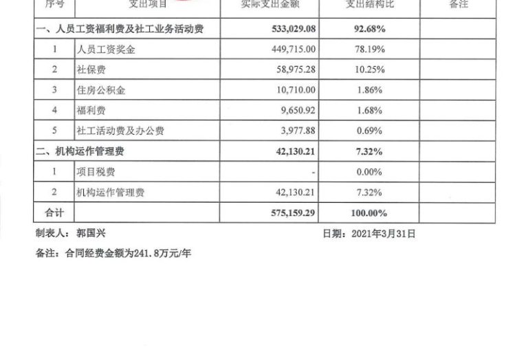 岗位类项目季度支出公示