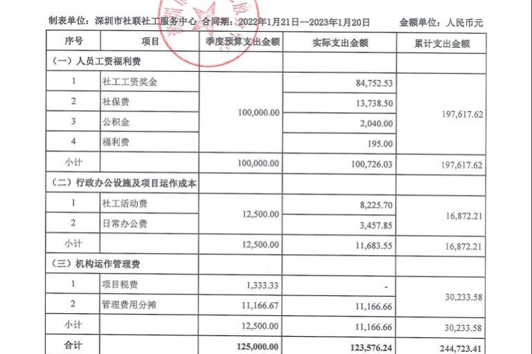 社区类项目季度支出公示