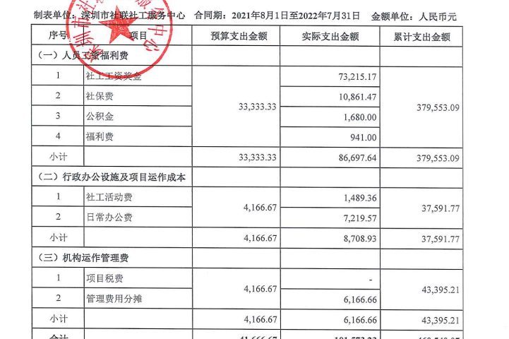 岗位类项目季度支出公示
