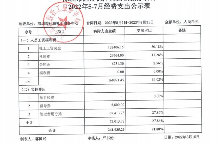 南华社区2022年5-7月财务公示表