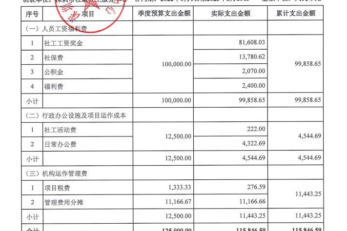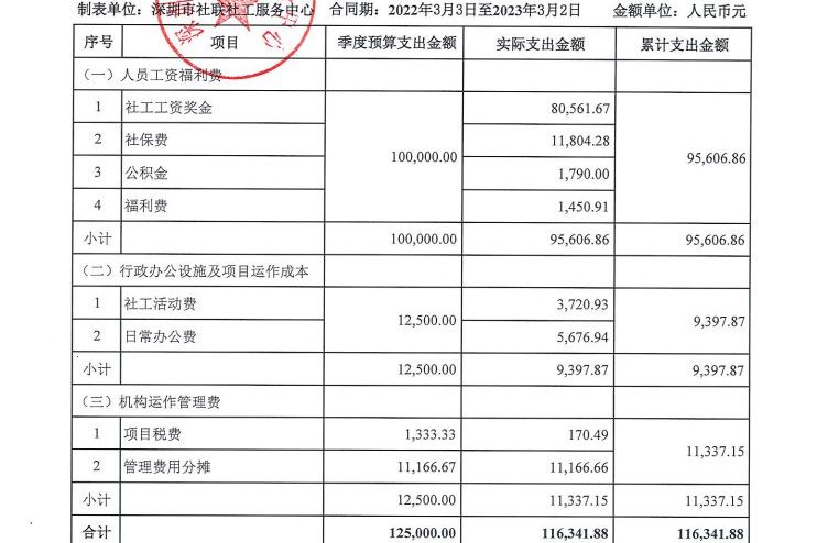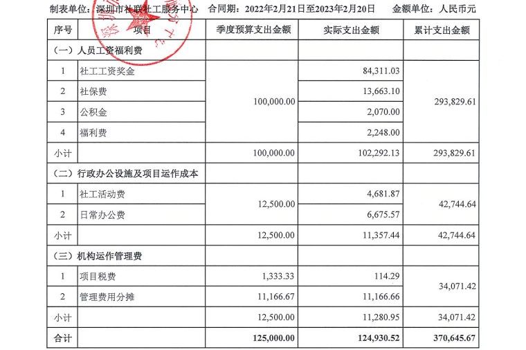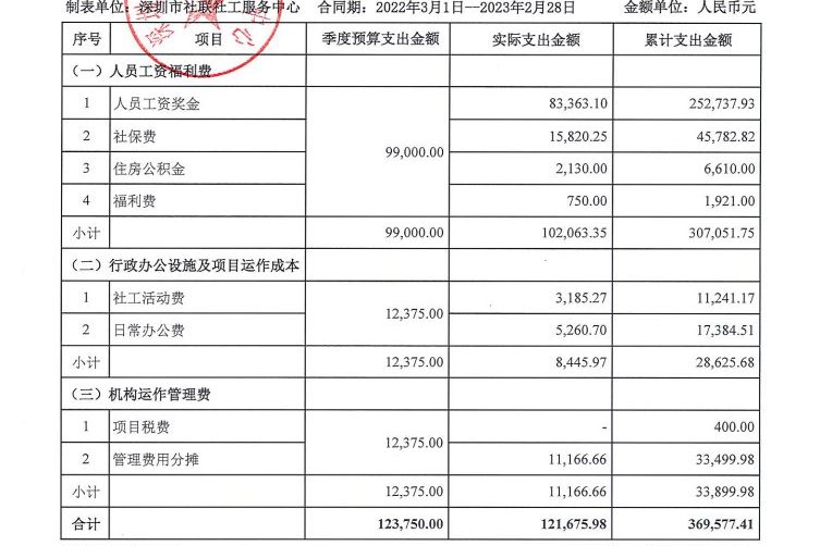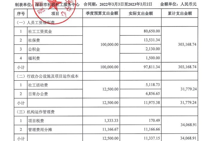 岗位类项目季度支出公示