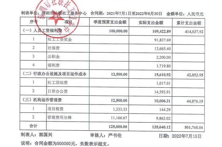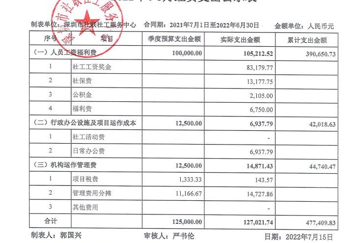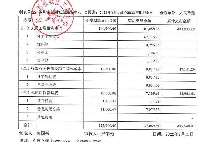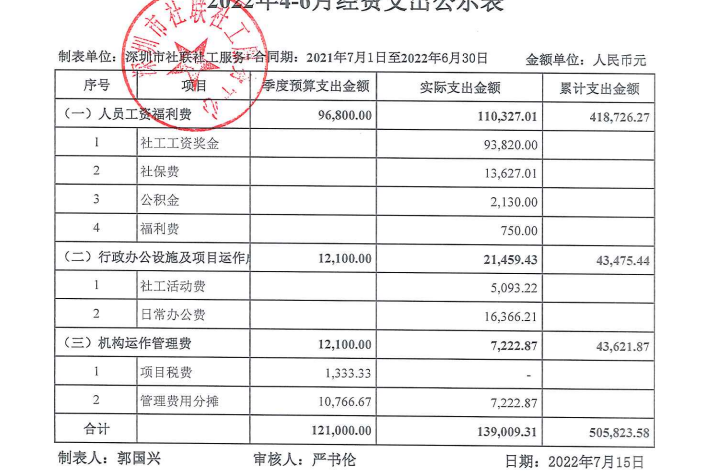 罗湖社区2022年4-6月财务公示表