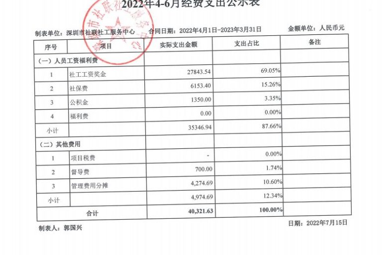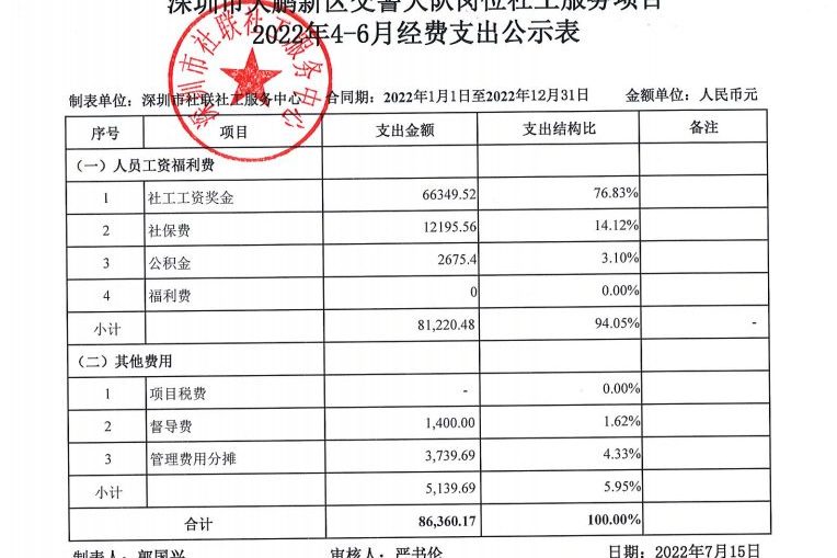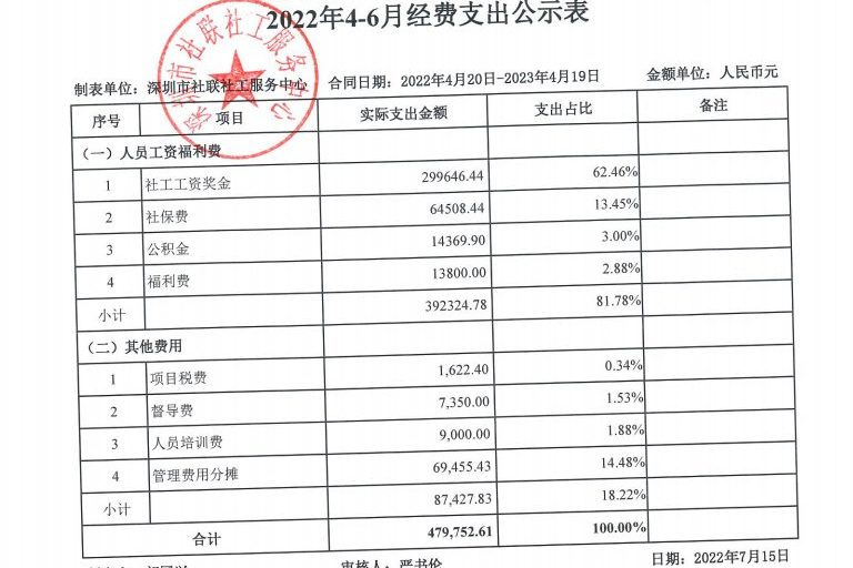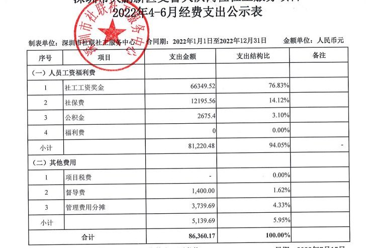 社保局纠纷调解项目2022年4-6月财务公示