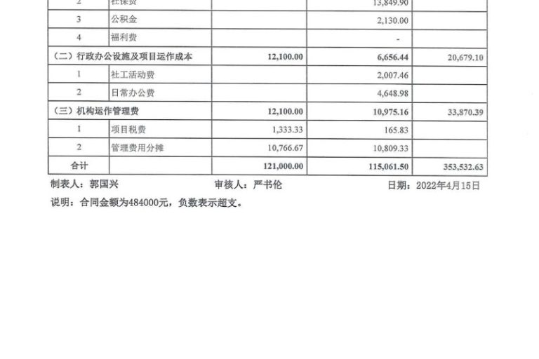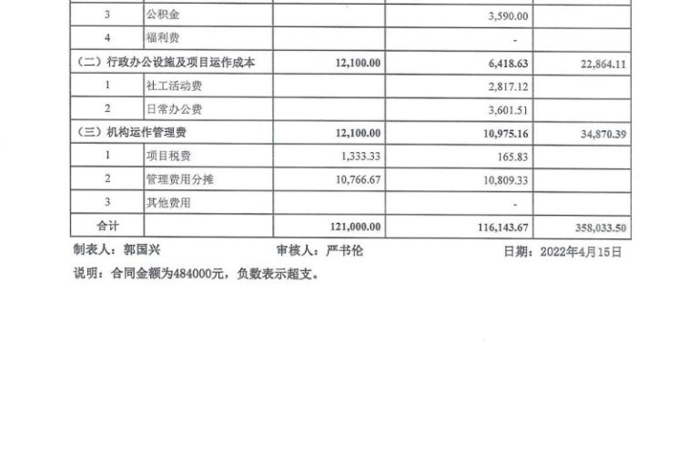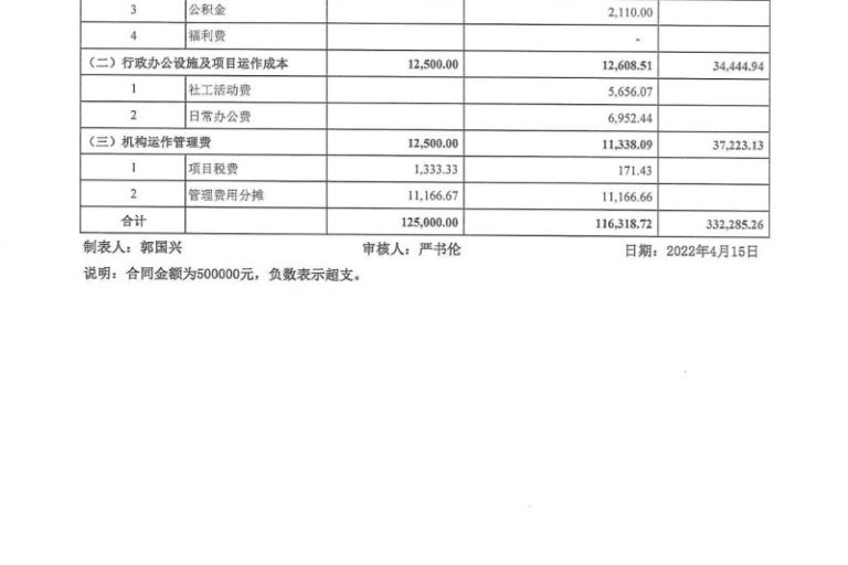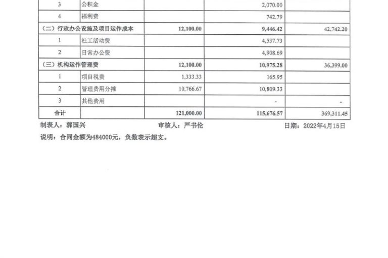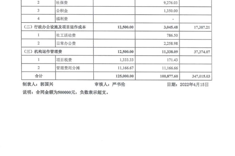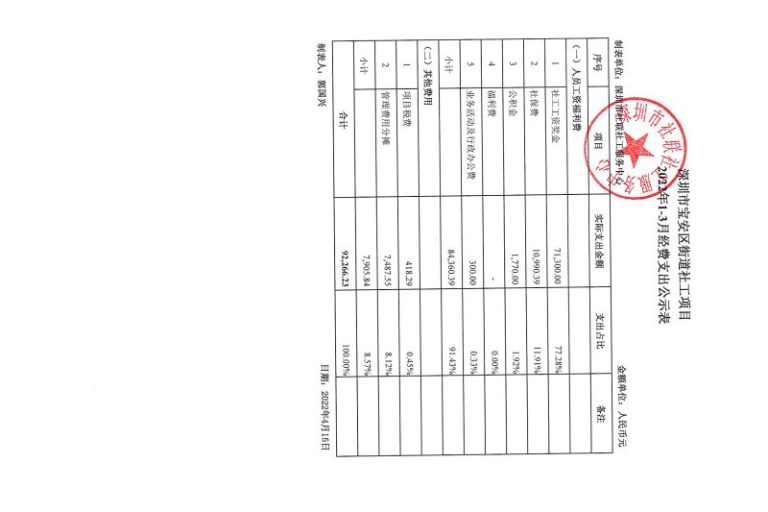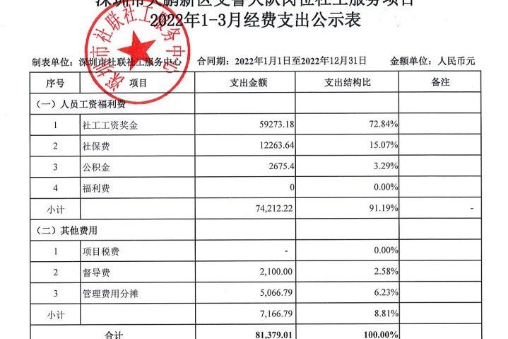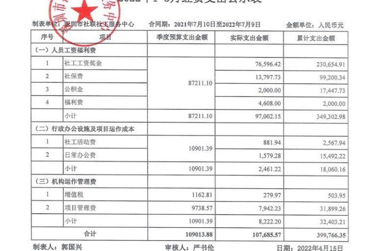 宝安区街道社工项目2022年1-3月财务公示