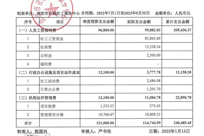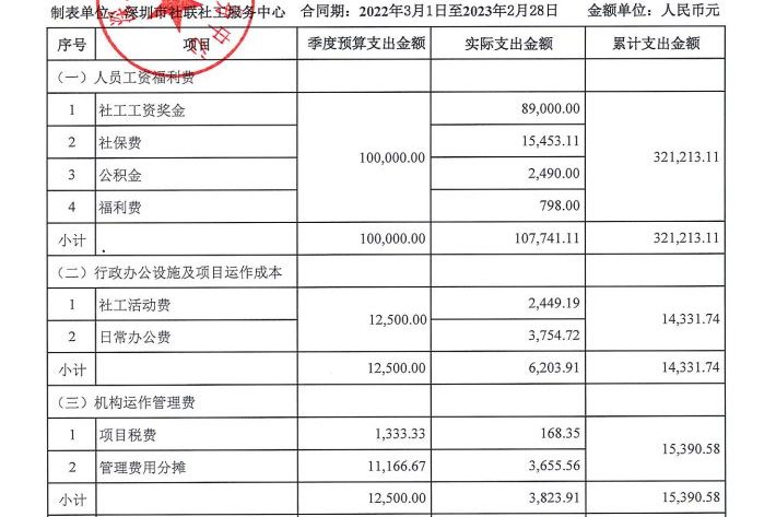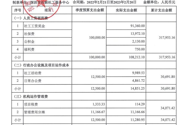 社区类项目季度支出公示