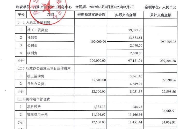岗位类项目季度支出公示