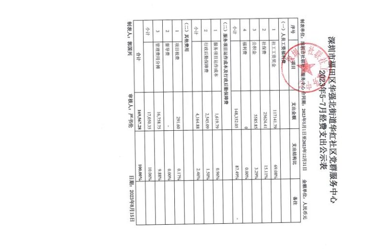 华红社区2023年5-7月财务公示表