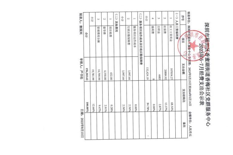 香梅社区2023年5-7月财务公示