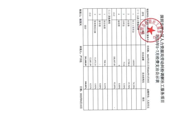 坪山劳动纠纷调解项目2023年5-7月财务公示