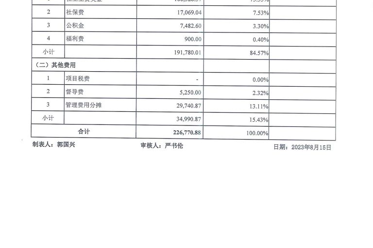岗位类项目财务公示