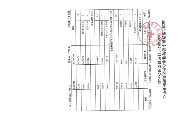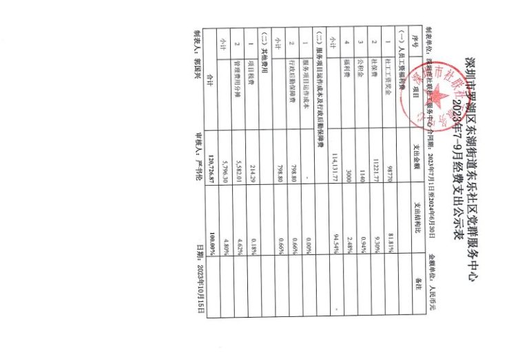 东乐社区2023年7-9月财务公示