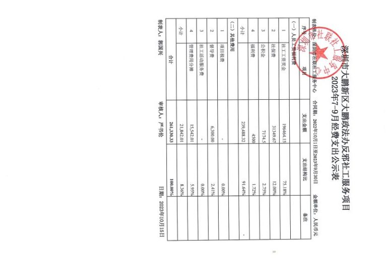 坪山反邪2023年7-9月财务公示