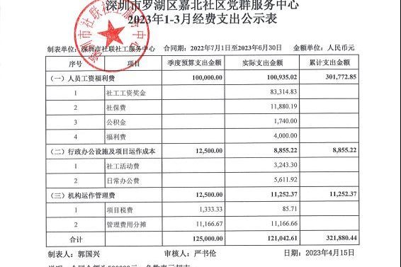 嘉北社区2023年1-3月财务公示