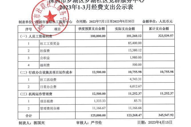罗湖社区2023年1-3月财务公示