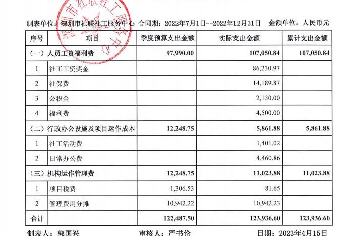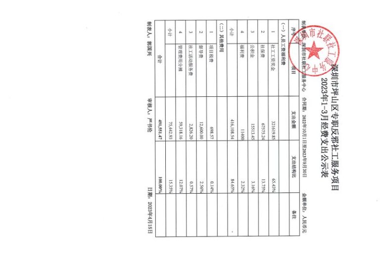 岗位类项目季度支出公示
