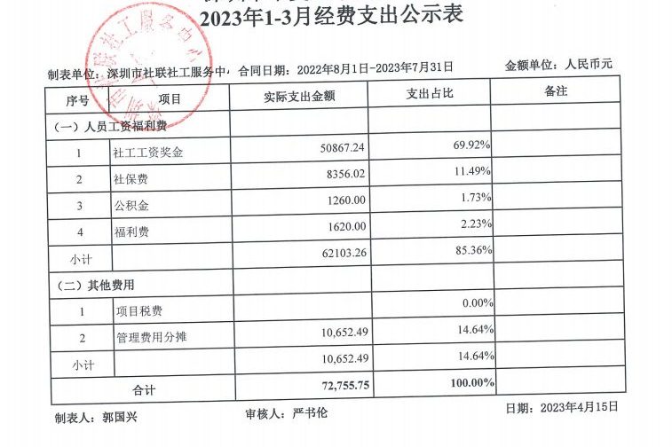 坪山反邪2023年1-3月财务公示