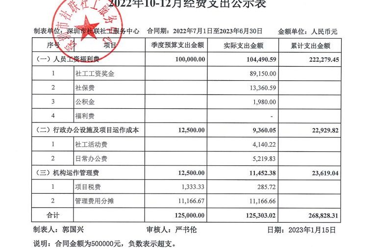 康宁医院精卫项目2022年10-12月财务公示(高)