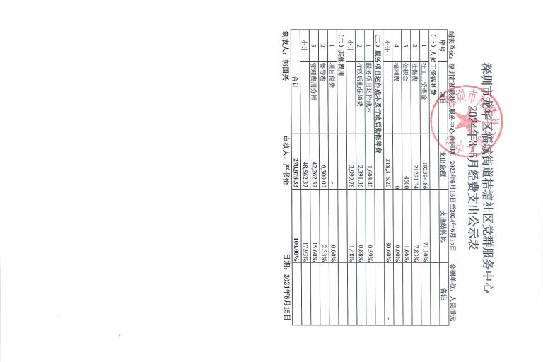 社区类项目季度支出公示