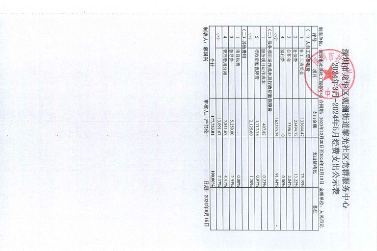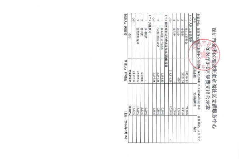 章阁社区2024年3-5月财务公示