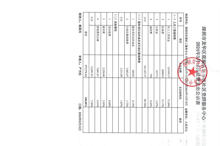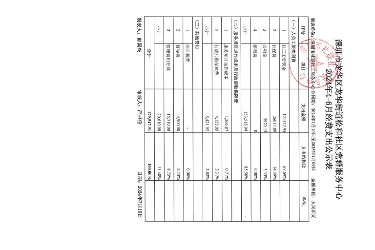 松和社区2024年4-6月财务公示
