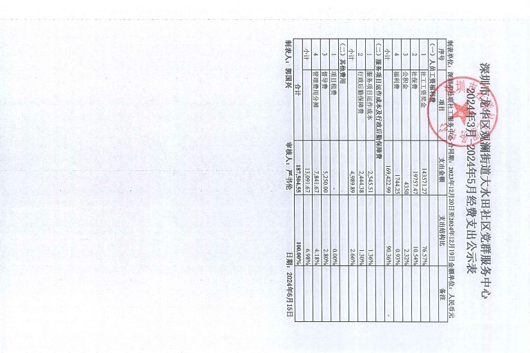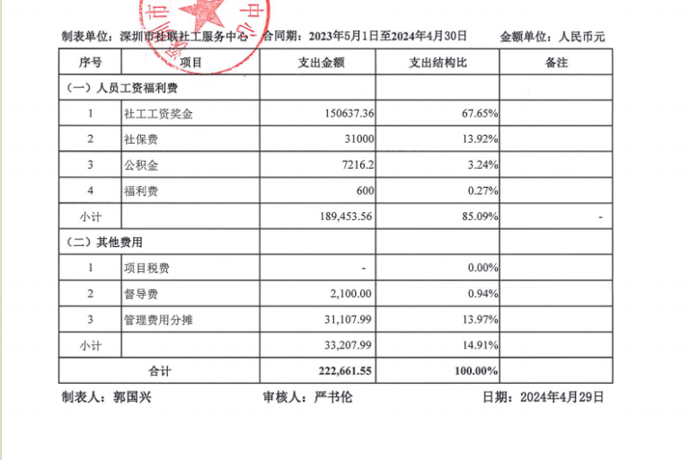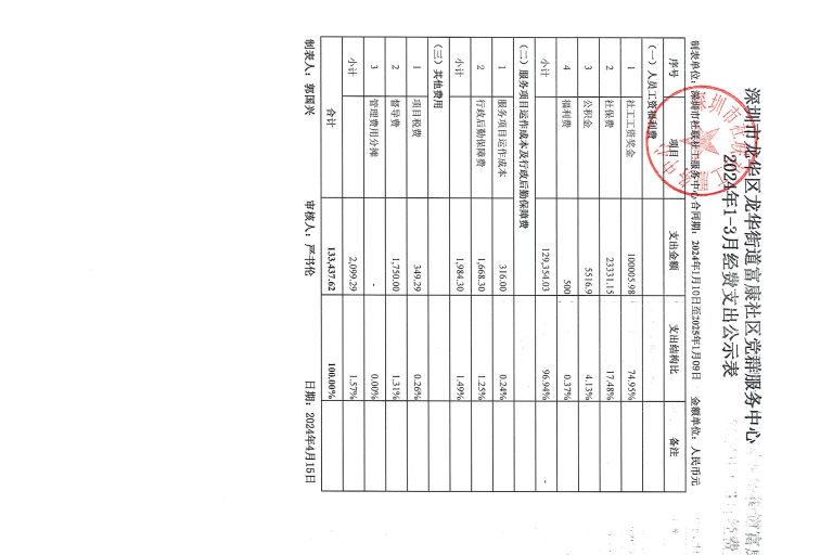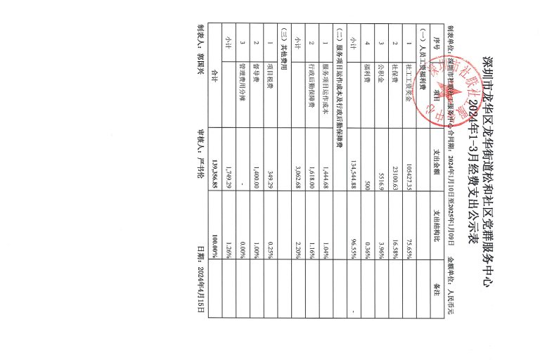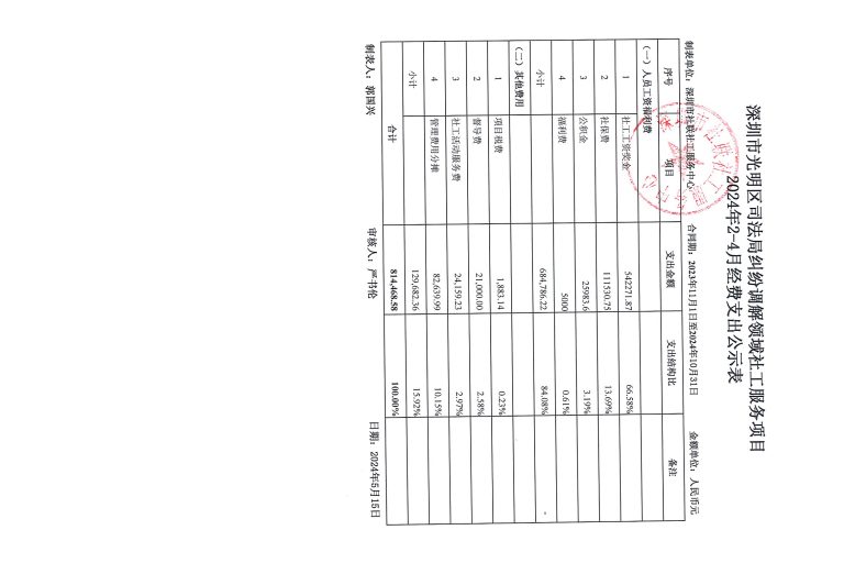 坪山人力资源局劳动纠纷调解项目2024年2-4月财务公示