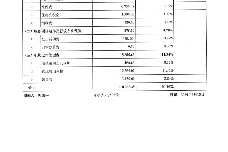 社区类项目财务公示