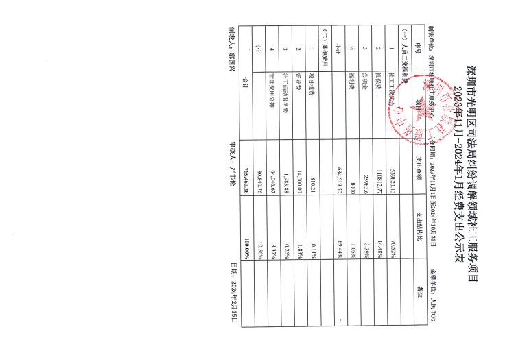 光明法院诉调对接项目2023.11-2024.1财务公示