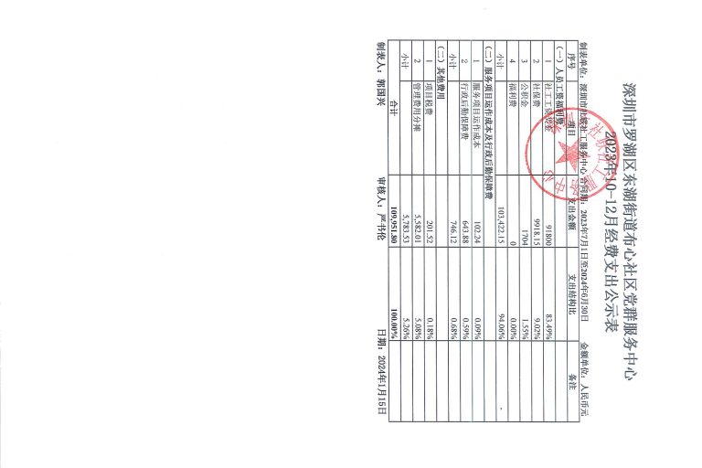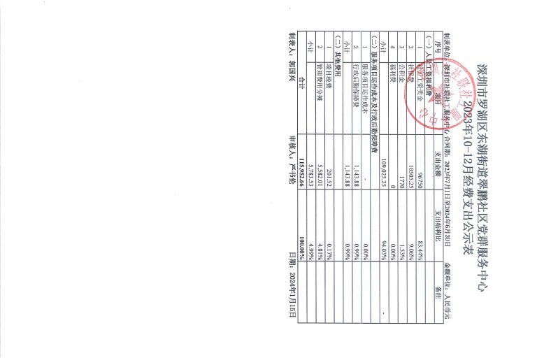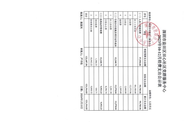 田心社区2023年10-12月财务公示