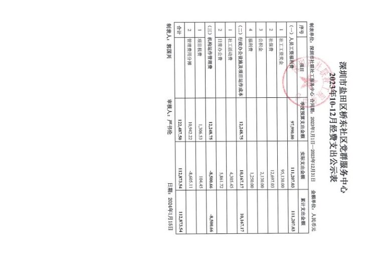 桥东社区2023年10-12月财务公示