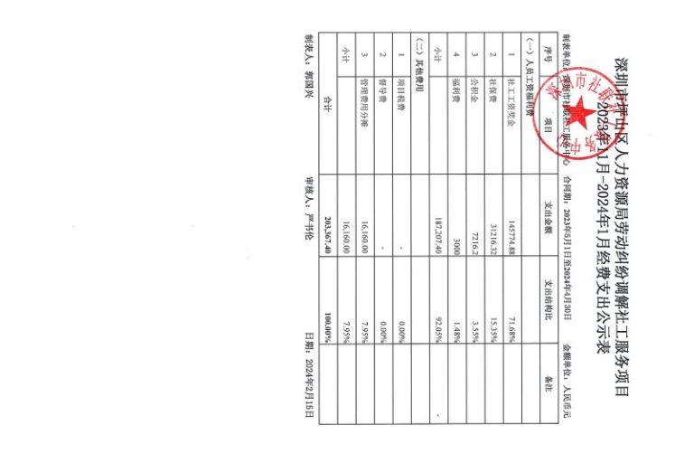 坪山劳动纠纷调解项目2023年11月-2024年1月财务公示