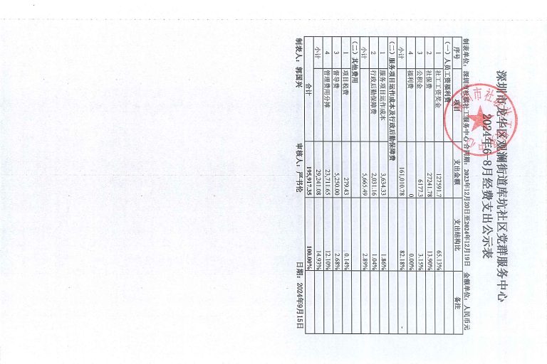 大水田社区2024年6-8财务公示
