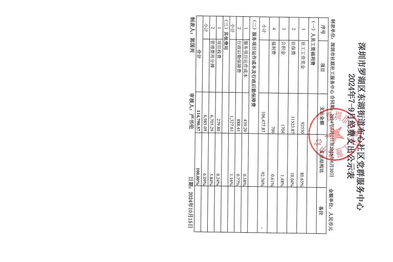 布心社区2024年7-9月财务公示