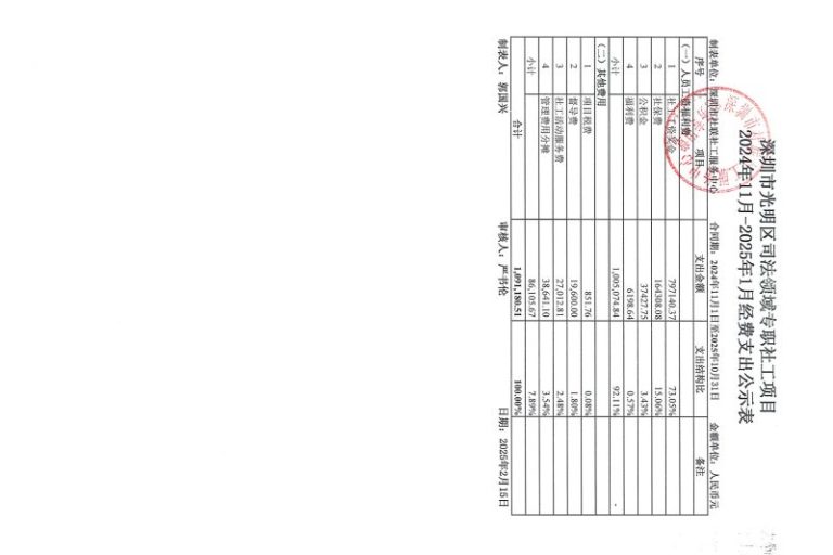 光明司法专职社工项目2024.11-2025.1财务公示