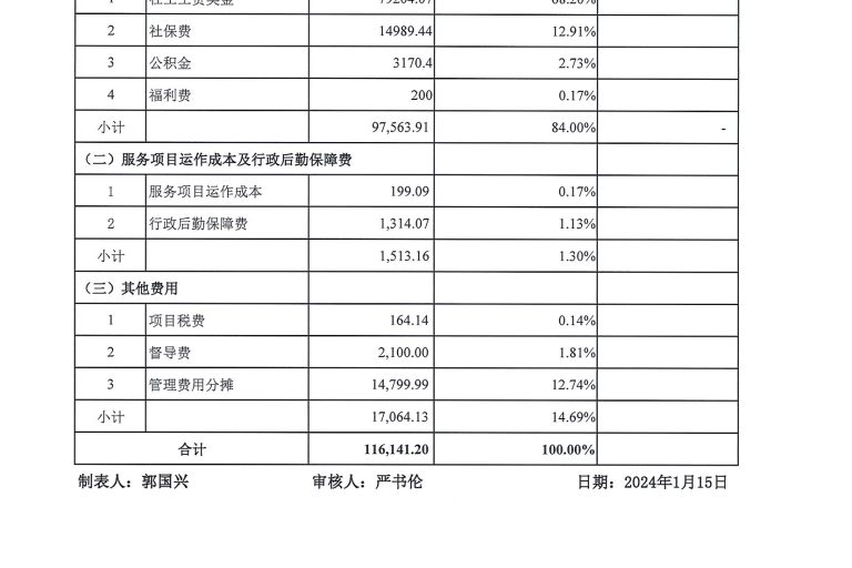 岗位类项目财务公示