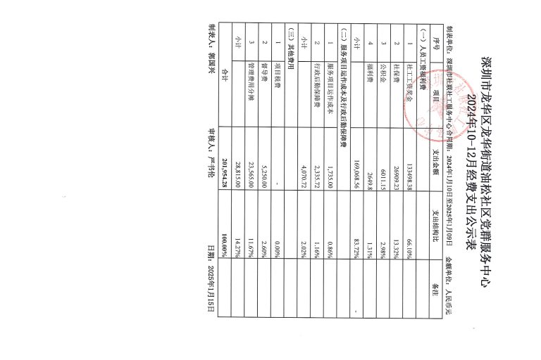 侨香社区2024年10-12月财务公示